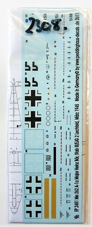 2308. PEDDINGHAUS DECALS 2481 Me 262 A-1a MAJOR HEINZ BAR Discount Decals