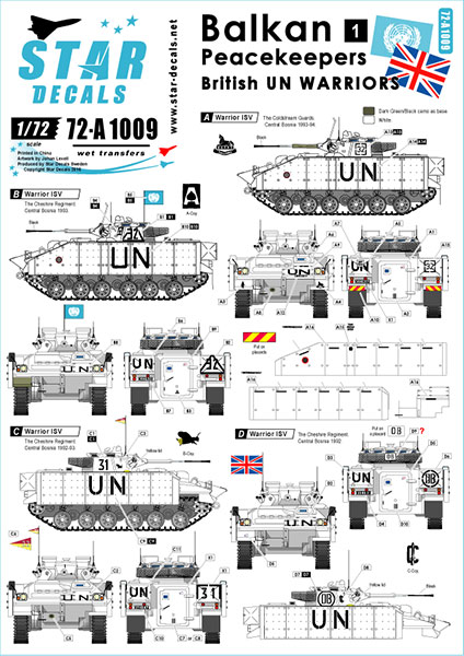 Star Decals Model Kit Decals 72-A1009 Balkan Peacekeepers   1. British UN Warriors.