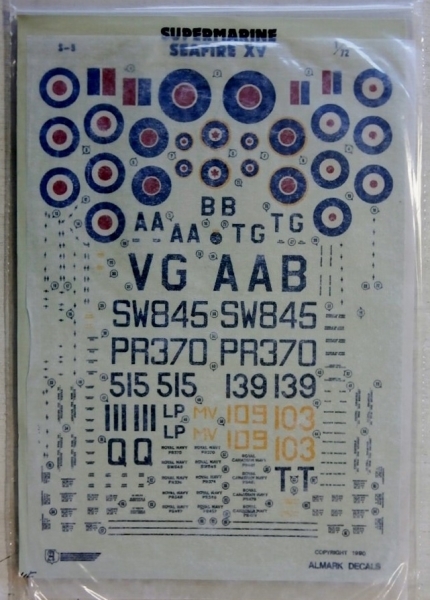 ALMARK Discount Decals 129. S-9 SUPERMARINE SEAFIRE XV Aircraft Model Kits