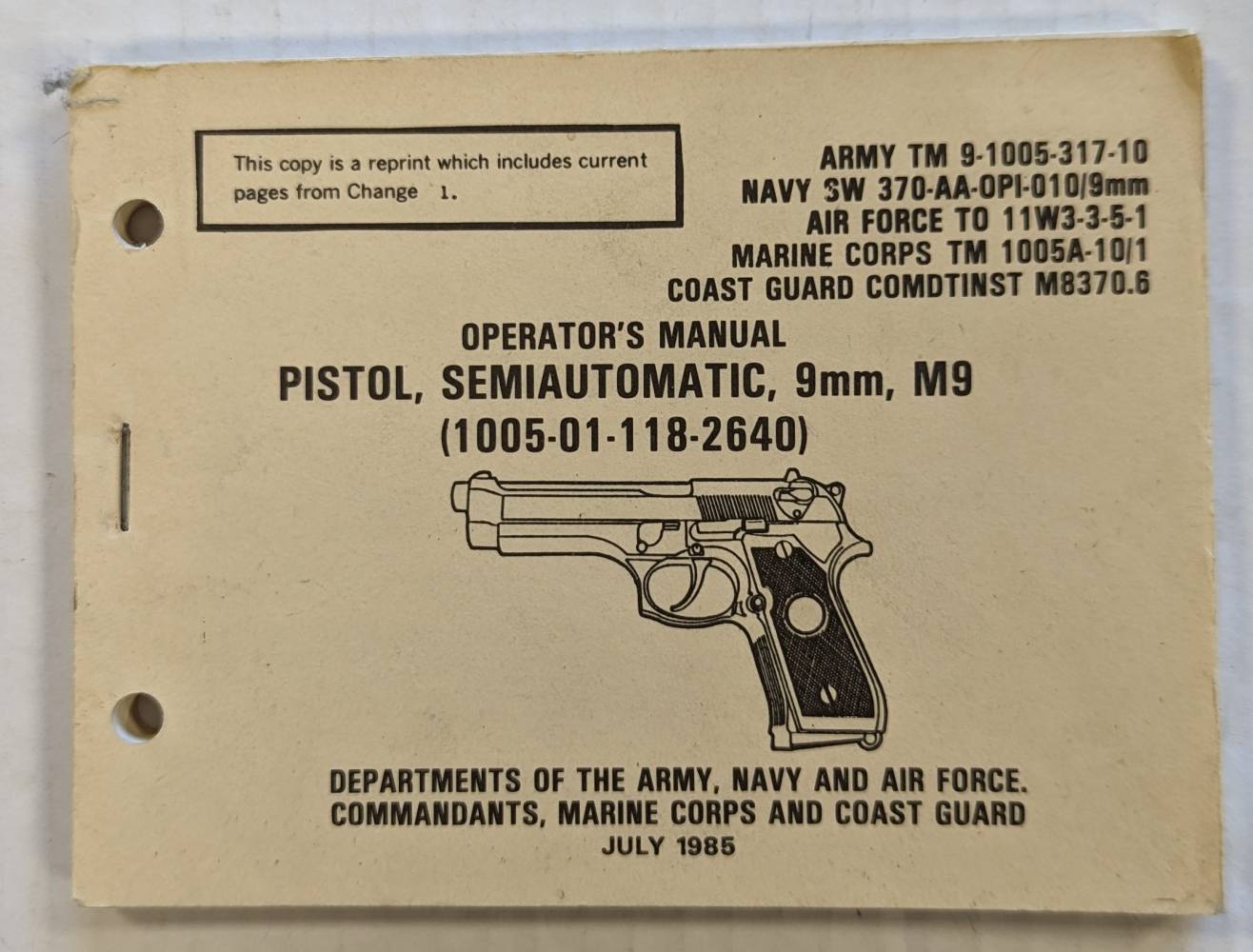 CHEAP BOOKS  ZB4313 OPERATORS MANUAL PISTOL  SEMIAUTOMATIC  9MM  M9 Books