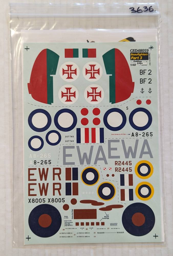 CUTTING EDGE  3636. 48059 BEAUFIGHTERS PART 3 Mk.IIF MK.IVF TT.21 Discount Decals