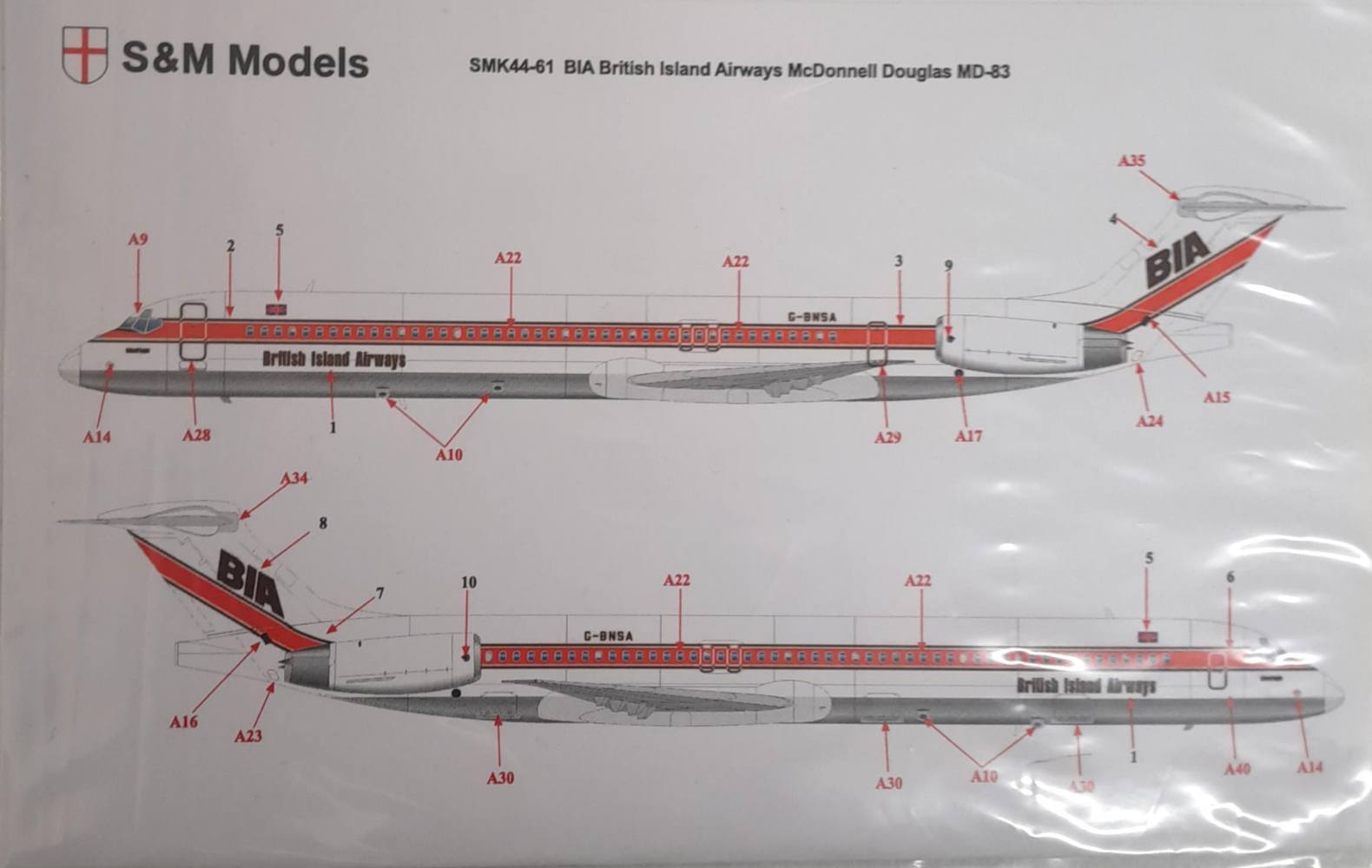 DISCOUNT DECALS  5830 SMK44-61 BIA BRITISH ISLAND AIRWAYS MCDONNELL DOUGLAS MD-83 S M Models Discount Decals