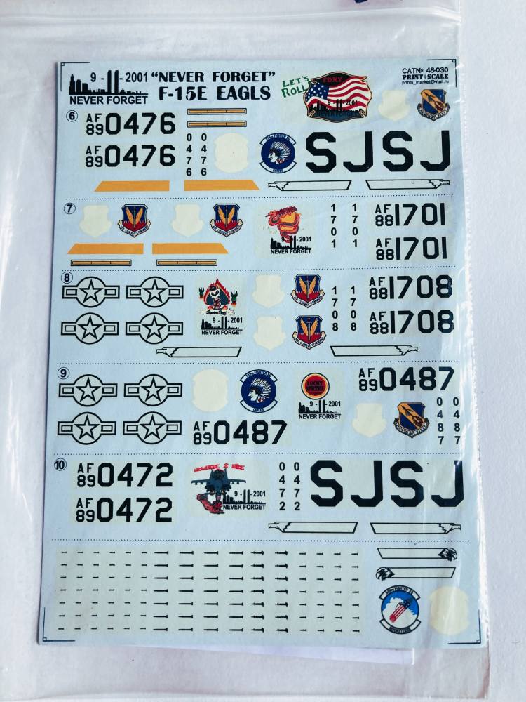 DISCOUNT DECALS  3516. PRINT SCALE 48-030 9-11-2001 NEVER FORGET F-15E EAGLES Discount Decals