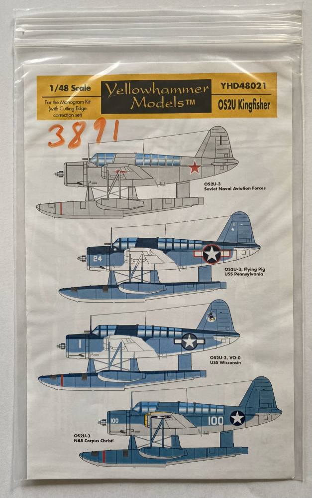 DISCOUNT DECALS 1/48 3891. YHD48021 YELLOWHAMMER MODELS OS2U KINGFISHER