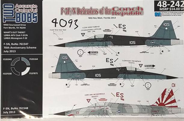 TWO BOBS  4093. 48-242 F5F/N DEFENDERS OF THE CONCH REPUBLIC  Discount Decals