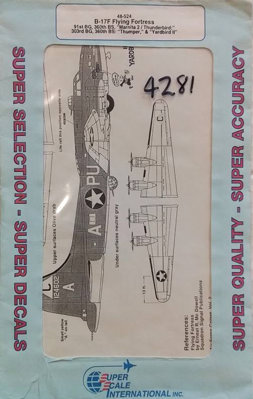 DISCOUNT DECALS 1/48 5959. 48-524 B-I7F FLYING FORTRESS