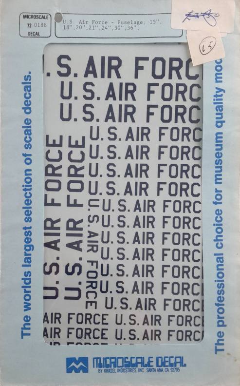 DISCOUNT DECALS 1/72 5020 72-0188 U.S. Air Force Decals - Fuselage: 15", 18", 20", 21", 24", 30", 36" Microscale Decal