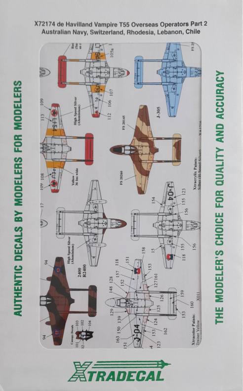 DISCOUNT DECALS  5068 X72174 De Havilland Vampire T55 Decals Overseas Operators  Xtradecal  Discount Decals