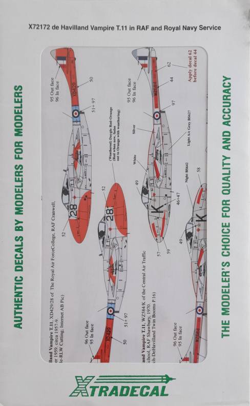 DISCOUNT DECALS  5069 X72172 de Havilland Vampire T.11 in RAF and Royal Navy Service  Xtradecal  Discount Decals