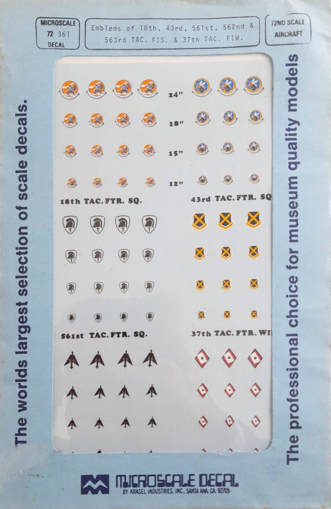 DISCOUNT DECALS 1/72 5238 72-361 EMBLEMS OF 18TH, 43RD, 551ST, 562ND & 563RD TAC FTR. FIS. & 37TH TAC FTR. WG. Microscale