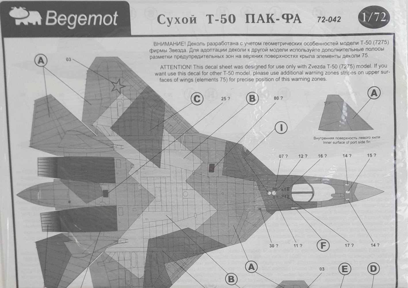 DISCOUNT DECALS 1/72 5316 72-042 СУХОЙ Т-50 ПАК-ФА Begemot