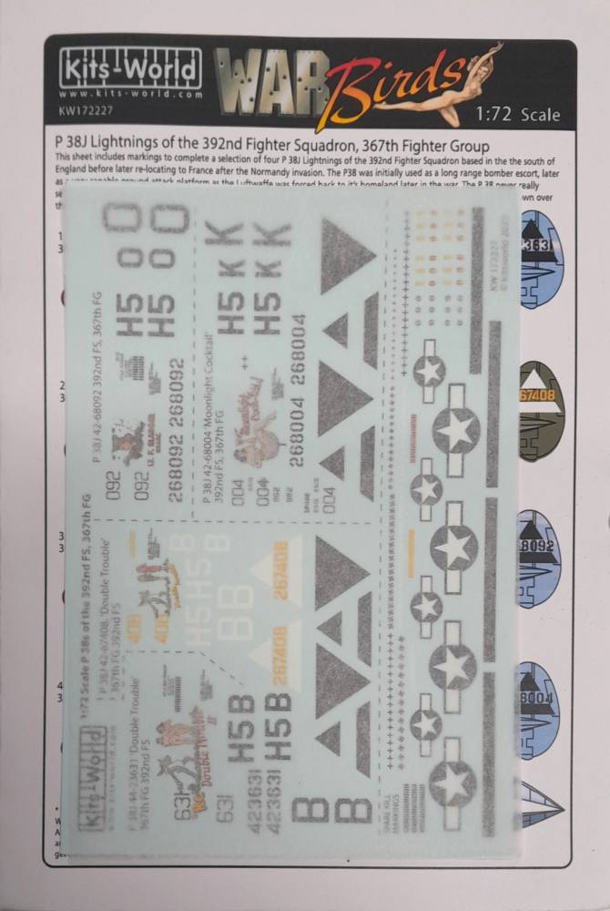 DISCOUNT DECALS  5658 KW172227 P 38J LIGHTNINGS OF THE 392ND FIGHTER SQUADRON  367TH FIGHTER GROUP KITS WORLD Discount Decals