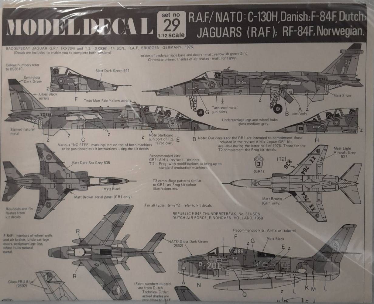 DISCOUNT DECALS  6135 Set No 29 RAF/NATO C-130H DANISH F-84F DUTCH JAGUARS  RAF  RF-84F NORWEGIAN Modeldecal Discount Decals