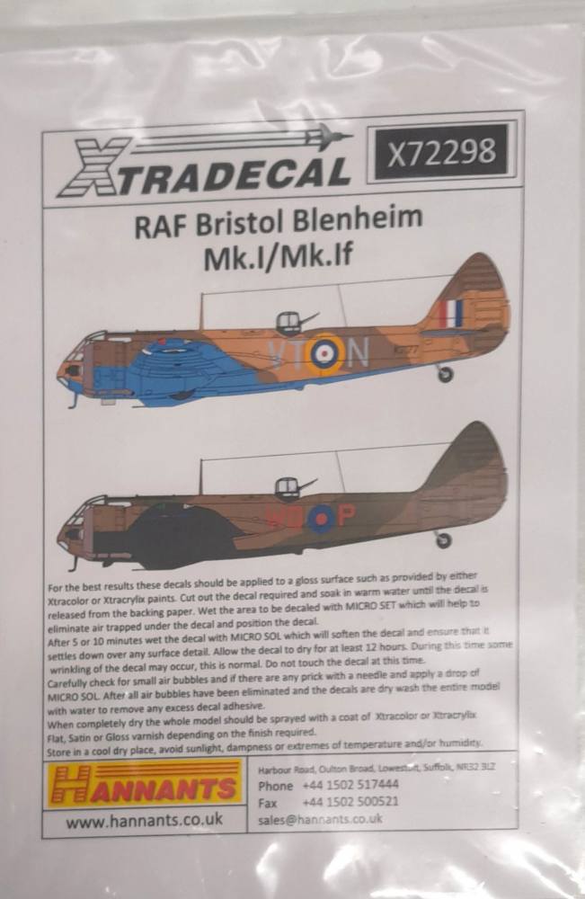 DISCOUNT DECALS  5660 X72298 RAF BRISTOL BLENHEIM MK.I/MK. IF XTRADECAL Discount Decals