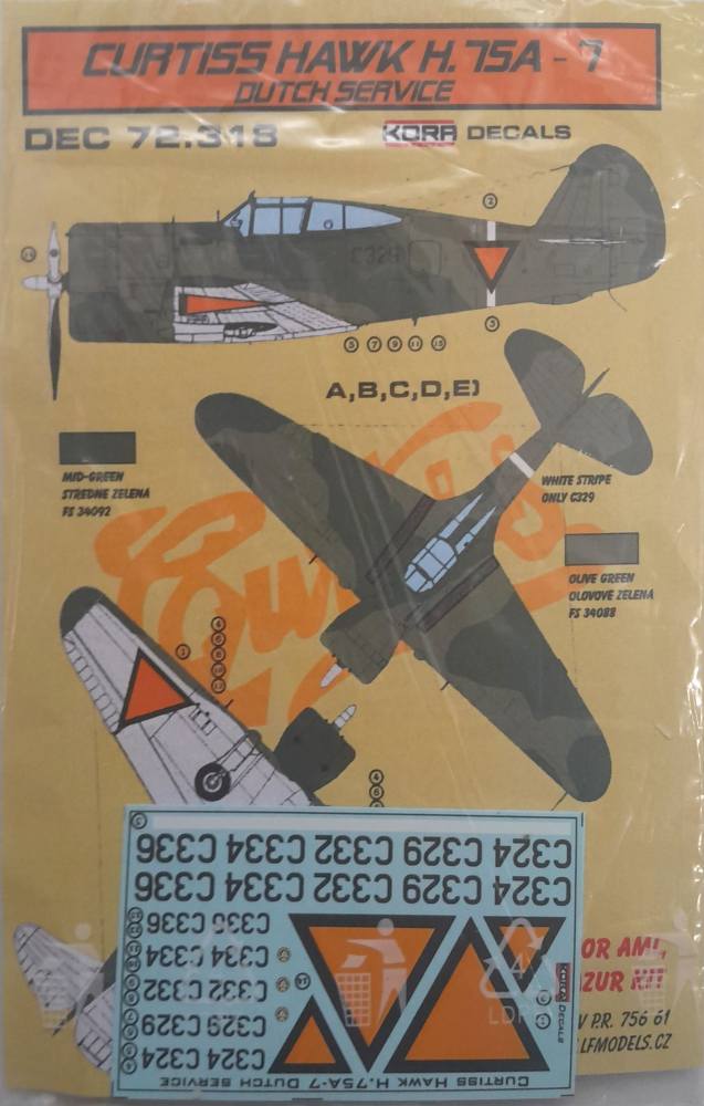 DISCOUNT DECALS 5725 DEC 72.318 CURTISS HAWK H. 75A-7 DUTCH SERVICE KORA DECALS