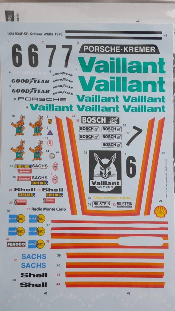 DISCOUNT DECALS scale1/24 5478 6677 1/24 934RSR KREMER WHITE 1976