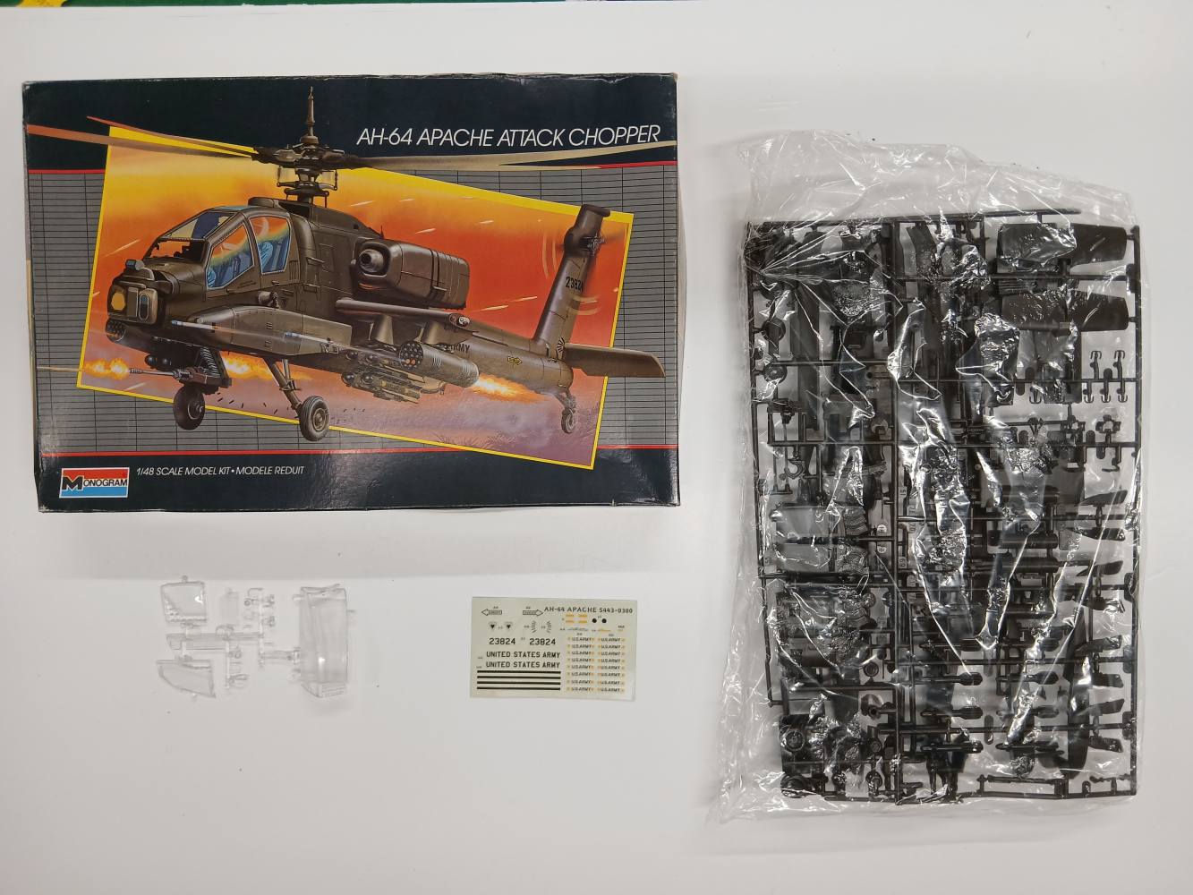 KINGKIT MODEL SCRAPYARD 1/48 MONOGRAM 5443 AH-64 APACHE ATTACK HELICOPTER (NO INSTRUCTIONS)