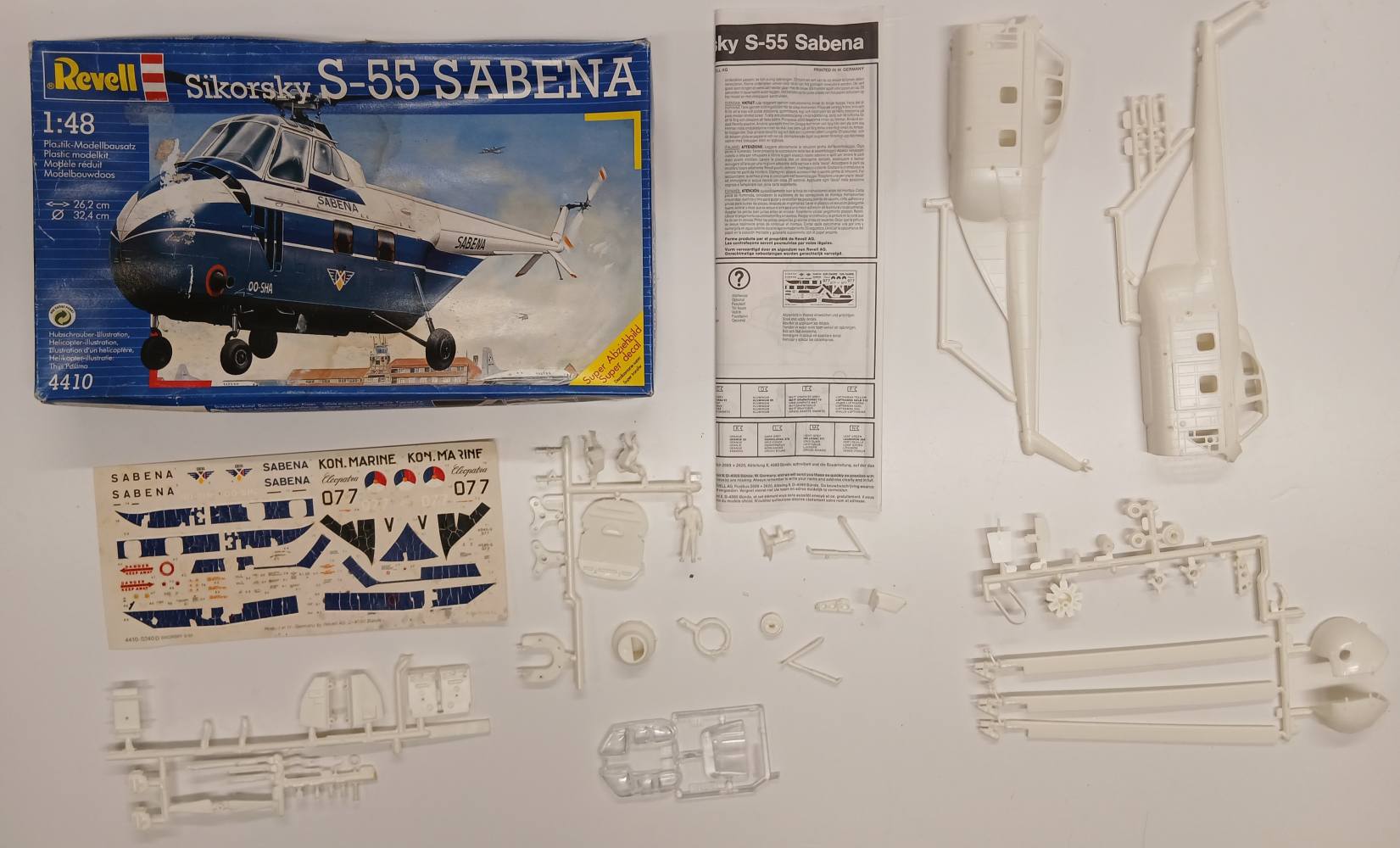 KINGKIT MODEL SCRAPYARD  REVELL 4410 SIKORSKY S-55 SABENA  CRACKED DECALS  Salvage Yard