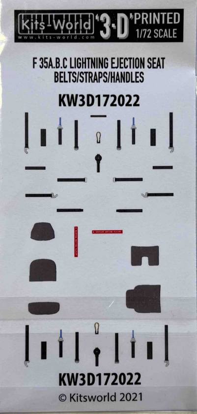 KITS WORLD 1/72 KW3D172022 F35A.B.C LIGHTNING EJECTION SEAT BELTS/STRAPS/HANDLES