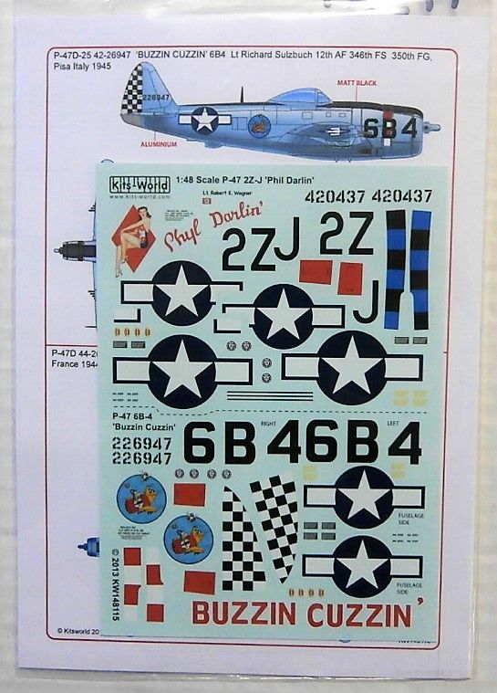 KITS WORLD  1730. WAR BIRDS P-47D THUNDERBOLT - BUZZIN CUZZIN AND PHYL DARLIN Discount Decals