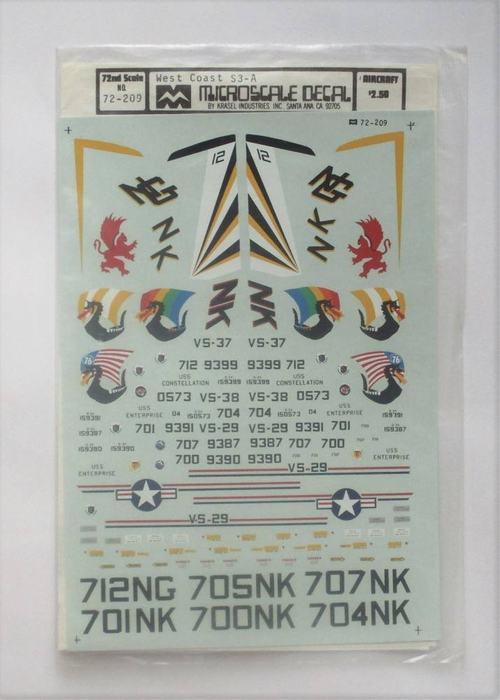 MICROSCALE 1/72 3112. 72209 WEST COAST S3-A