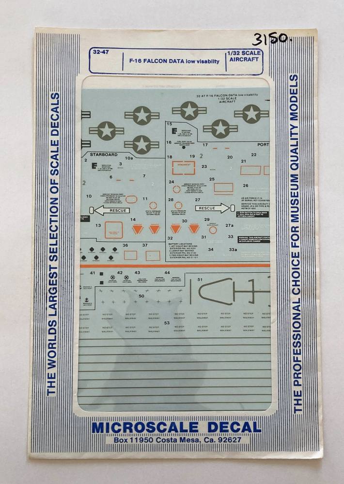 MICROSCALE  3150. 32-47 F-16 FALCON DATA LOW VISABILITY Discount Decals