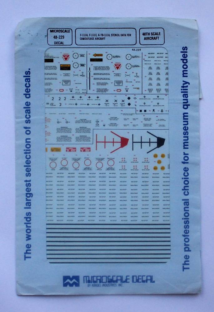 MICROSCALE 1/48 3001. 48229 F-111A F-111E FB-111A STENCIL DATA FOR CAMOUFLAGE AIRCRAFT