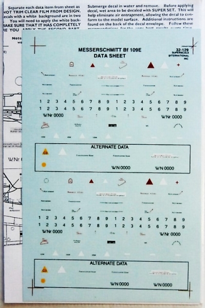 SUPER SCALE INTERNATIONAL Discount Decals 739. 32-129 MESSERSCHMITT BF109E DATA SHEET