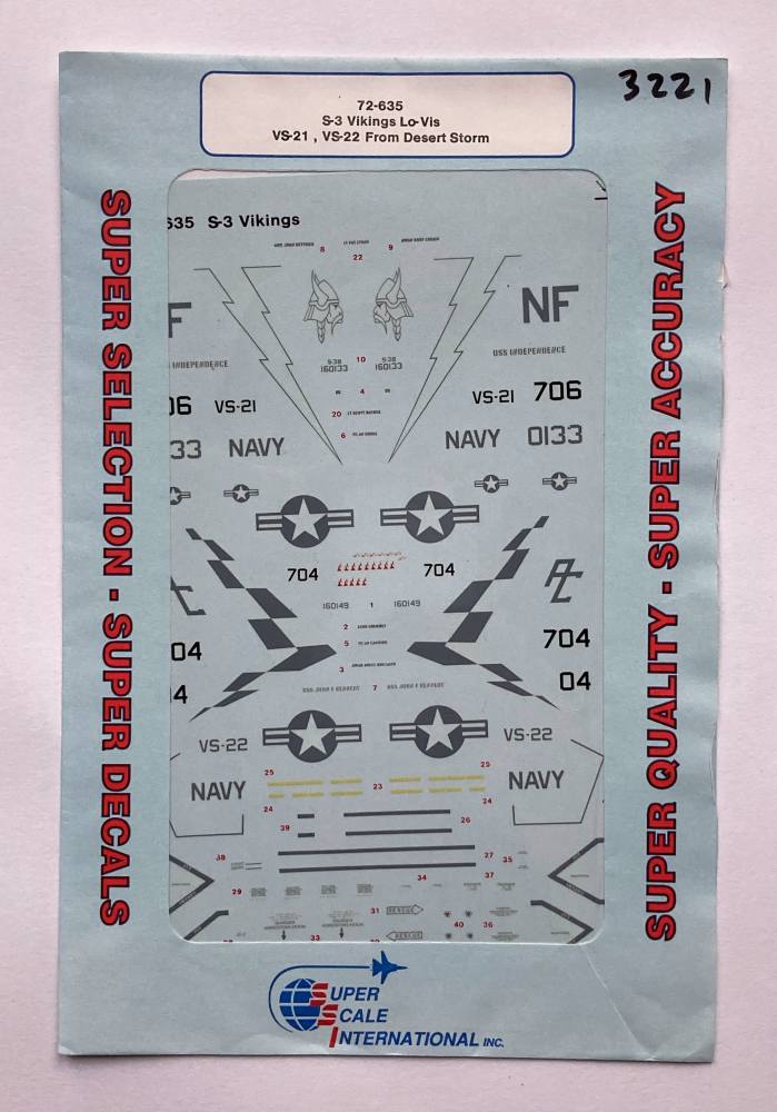 SUPER SCALE INTERNATIONAL  3221.72-635 S-3 VIKINGS LO-VIS VS-21 VS-22 FROM DESERT STORM Discount Decals