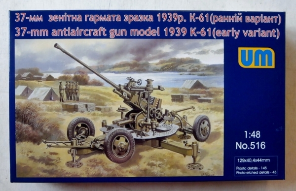 UNIMODEL Military Model Kits 516 37mm ANTIAIRCRAFT GUN MODEL 1939 K-61  EARLY VARIANT