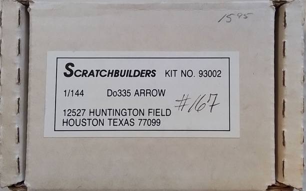UNKNOWN MAKE 1/144 KIT NO. 93002 SCRATCHBUILDERS DO335 ARROW 12527 HUNTINGTON FIELD HOUSTON TEXAS 77099