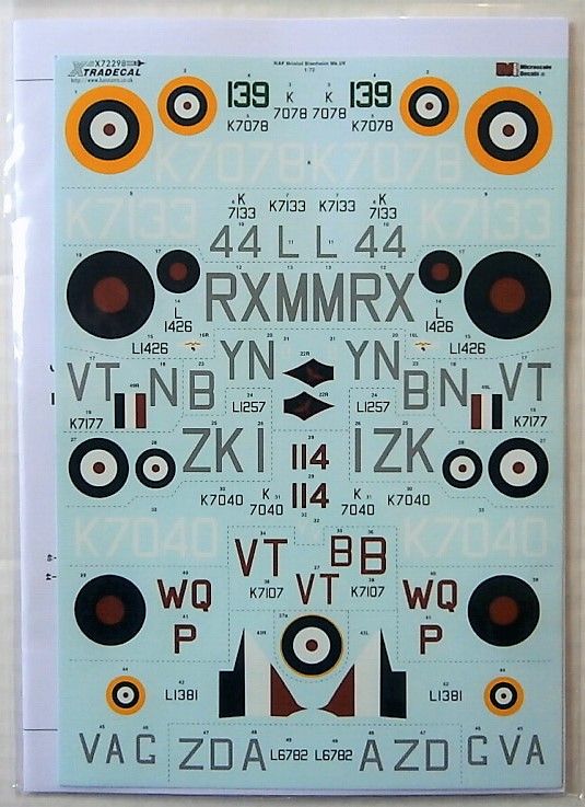 XTRADECAL  72298 RAF BRISTOL BLENHEIM Mk.I/Mk.If Model Kit Decals