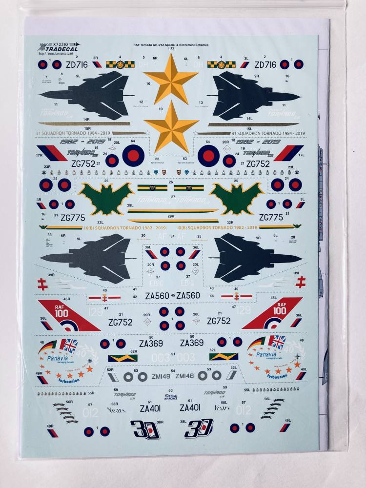 XTRADECAL 1/72 3240. 72310 RAF TORNADO GR.4/GR.4A SPECIAL AND RETIREMENT SCHEMES