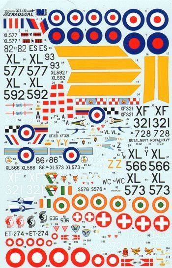 XTRADECAL Discount Decals 402. 72123 HAWKER HUNTER T6 AND EXPORT 2 SEATERS