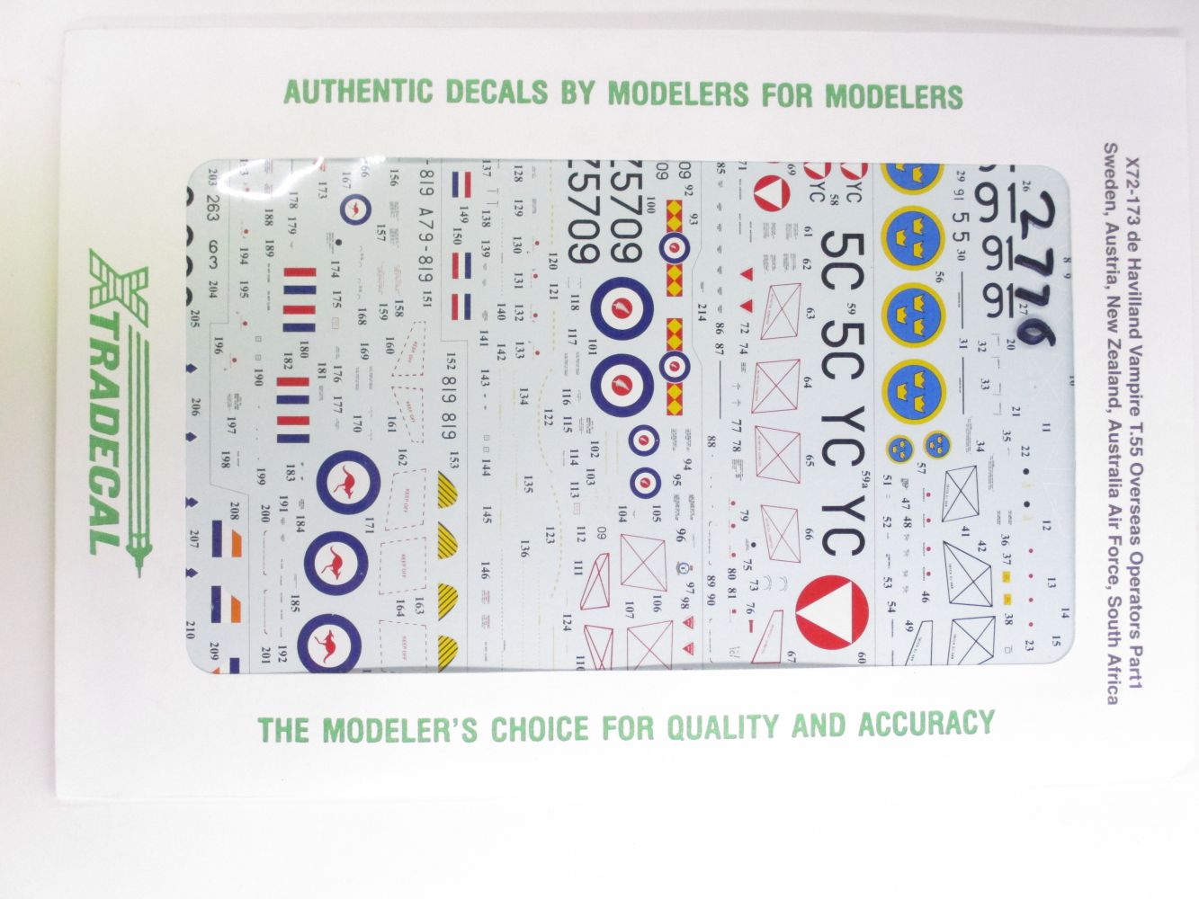 XTRADECAL  2770 X72-173 DE HAVILLAND VAMPIRE T.55 OVERSEAS OPERATORS PART1 SWEDEN  AUSTRIA  NEW ZEALAND  AUSTRALIA AIR FORCE  SOUTH FRANCE Discount Decals