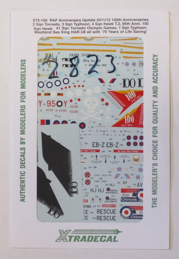 XTRADECAL  2823. X72156 RAF ANNIVERSARY UPDATE 2011/12 100TH ANNIVERSARIES Discount Decals